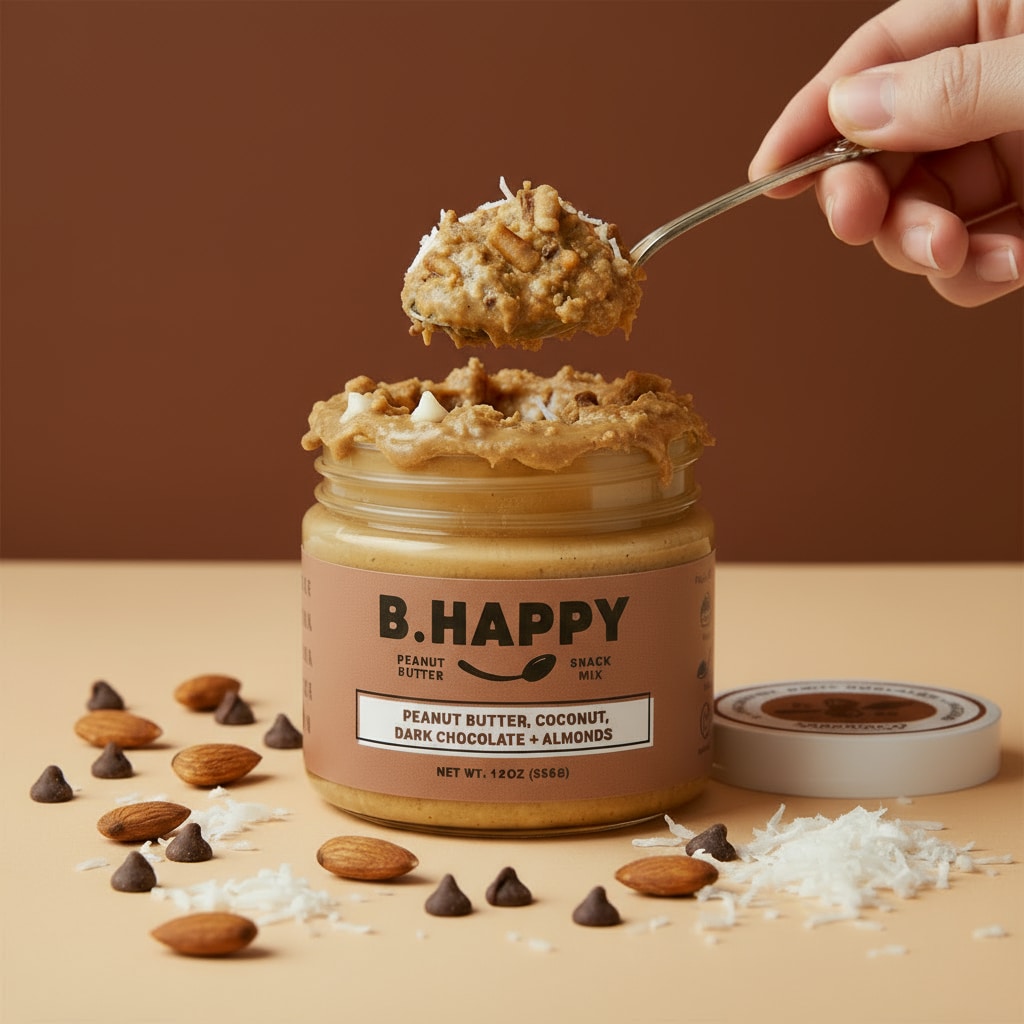 Honey Roasted Peanuts (peanuts, sugar, honey, vegetable oil, salt, modified food starch, maltodextrin and xanthan gum), coconut (contains sulfites, powdered sugar, cornstarch, water propylene glycol, salt), dark chocolate chips (sugar, chocolate, milkfat, cocoa butter, soy lecithin, natural flavors), almonds, peanut oil.